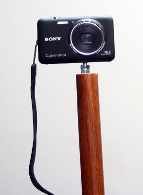 My little Sony camera mounted on the monopod. It holds my Rebel XT pretty well too.